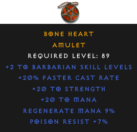Required Level: 89+2 to Barbarian Skill Levels+20% Faster Cast Rate+20 to StrengthPoison Resist +7%Regenerate Mana 9%+20 to Mana