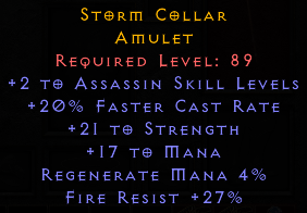 Required Level: 89+2 to Assassin Skill Levels+20% Faster Cast Rate+21 to Strength+17 to ManaRegenerate Mana 4%Fire Resist +27%