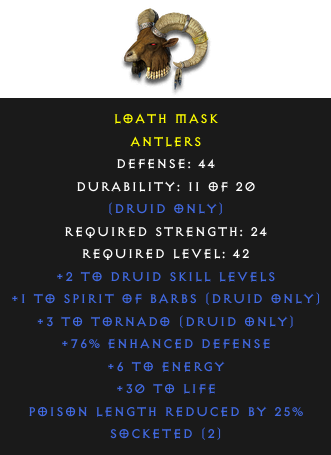 Antlers: Loath MaskRequired Level: 42 Rarity: rare | Select the realm to see the price |