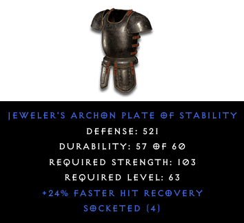 Required Level: 63Defense: 521+24% Faster Hit RecoverySocketed (4)