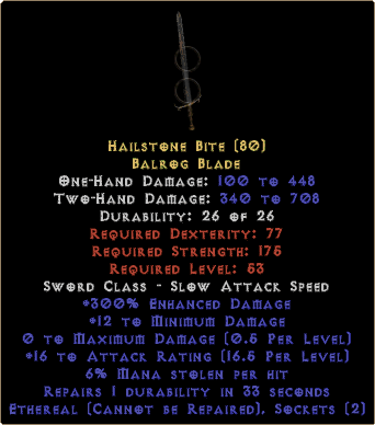Balrog Blade: Hailstone BiteOne-Hand Damage: 100 to 448 Rarity: Rare | Select the realm to see the price |