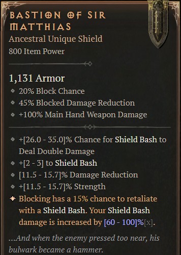 Bastion of Sir MatthiasItem Power: 800 Rarity: Unique | Out of stock |