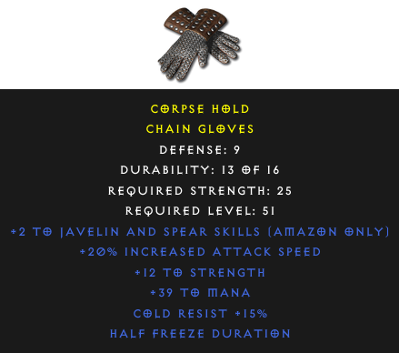 Chain Gloves: Corpse HoldRequired Level: 51 Rarity: rare | Select the realm to see the price |