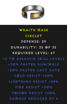 Circlet: Wraith MaskRequired Level: 67 Rarity: rare | Select the realm to see the price |