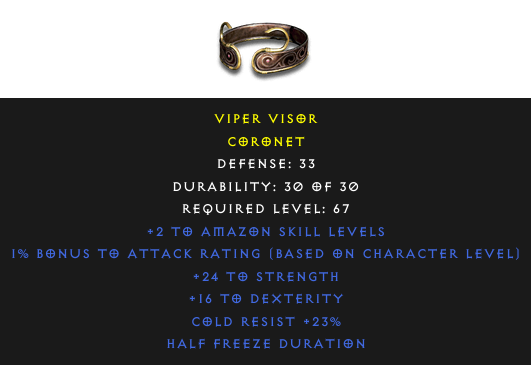 Coronet: Viper VisorRequired Level: 67 Rarity: rare | Select the realm to see the price |