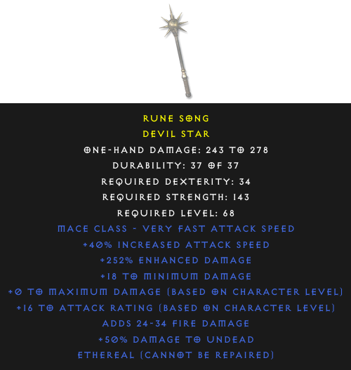 Devil Star: Rune SongRequired Level: 68 Rarity: rare | Select the realm to see the price |