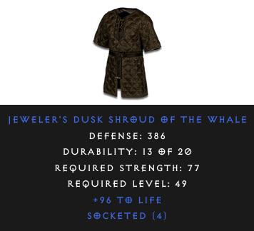Required Level: 49Defense: 386Socketed (4)+96 to Life