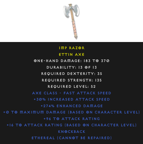 Ettin Axe: Imp RazorRequired Level: 52 Rarity: rare | Select the realm to see the price |