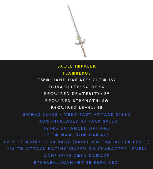 Flamberge: Skull ImpalerRequired Level: 48 Rarity: rare | Select the realm to see the price |