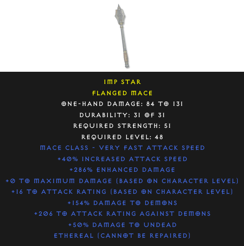 Flanged Mace: Imp StarRequired Level: 48 Rarity: rare | Select the realm to see the price |