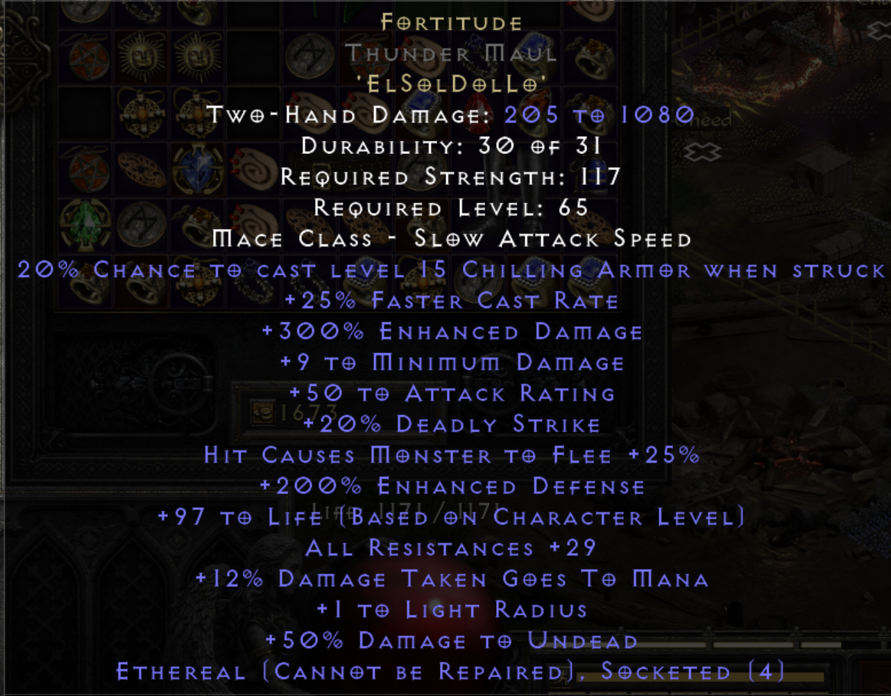 Variables: All Resistances +25-29, 1-1.375 Life Per Character Level.