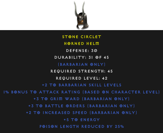 Horned Helm: Stone CircletRequired Level: 42 Rarity: rare | Select the realm to see the price |
