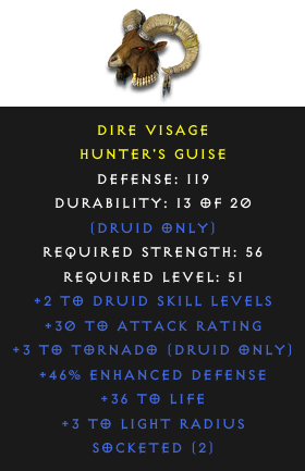 Hunters Guise: Dire VisageRequired Level: 51 Rarity: rare | Select the realm to see the price |