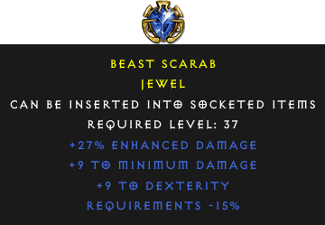 Required Level: 37+9 to Dexterity+27% Enhanced DamageRequirements -15%+9 to Minimum Damage