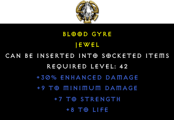 Required Level: 42+7 to Strength+8 to Life+30% Enhanced Damage+9 to Minimum Damage