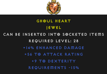 Required Level: 28+9 to Dexterity+56 to Attack Rating+14% Enhanced DamageRequirements -15%
