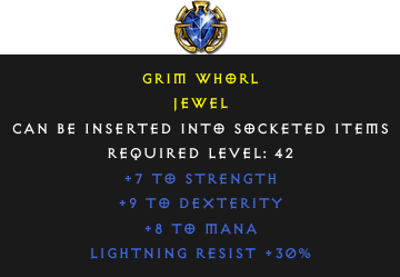 Required Level: 42+7 to Strength+9 to DexterityLightning Resist +30%+8 to Mana