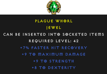 Required Level: 42+7% Faster Hit Recovery+9 to Strength+8 to Dexterity+9 to Maximum Damage