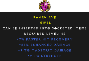 Required Level: 42+7% Faster Hit Recovery+9 to Strength+9 to Maximum Damage+27% Enhanced Damage