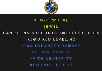 Required Level: 42+9 to Strength+9 to DexterityReplenish Life +3+28% Enhanced Damage