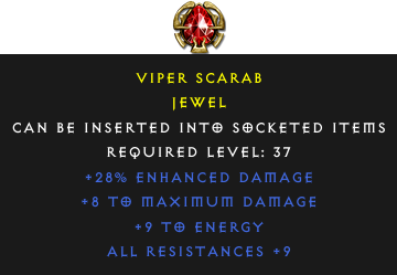 Required Level: 37All Resistances +9+8 to Maximum Damage+28% Enhanced Damage+9 to Energy