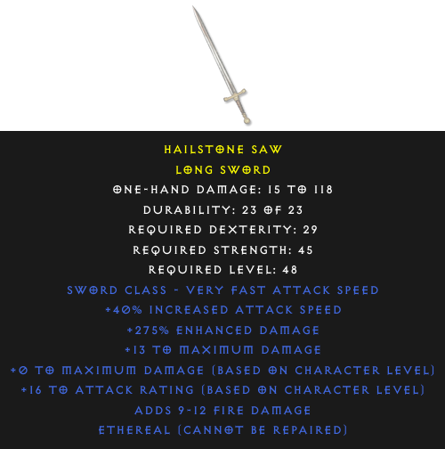 Long Sword : Hailstone SawRequired Level: 48 Rarity: rare | Select the realm to see the price |