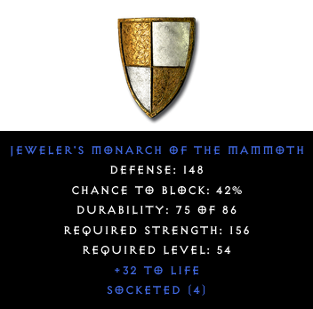 Required Level: 54Defense: 148Socketed (4)+32 to Life