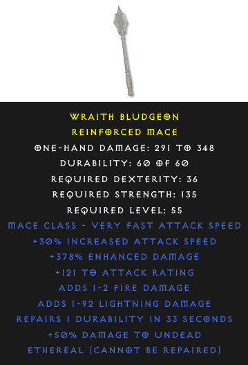 Reinforced Mace: Wraith BludgeonRequired Level: 55 Rarity: rare | Select the realm to see the price |