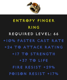 Required Level: 66+10% Faster Cast Rate+17 to Strength+24 to Attack Rating+37 to LifePoison Resist +17%Fire Resist +29%