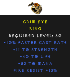 Required Level: 60+10% Faster Cast Rate+11 to Strength+40 to LifeFire Resist +13%+82 to Mana