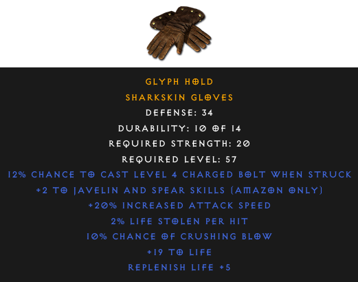 Sharkskin Gloves: Glyph HoldRequired Level: 57 Rarity: rare | Select the realm to see the price |