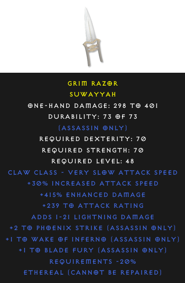 Suwayyah: Grim RazorRequired Level: 48 Rarity: rare | Select the realm to see the price |
