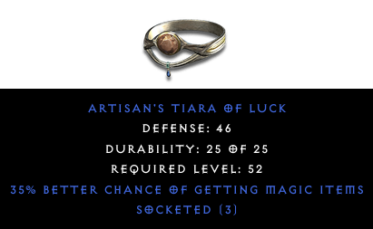 Required Level: 52Defense: 46Socketed (3)35% Better Chance of Getting Magic Items